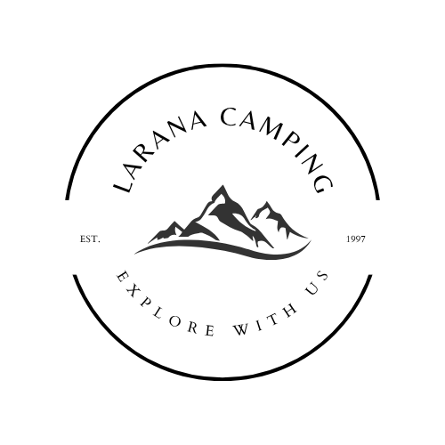 Black and white graphic of a mountain scene, with trees and a winding road.